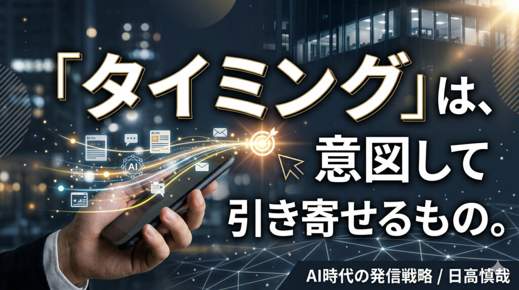 モヤモヤ解決セミナーが目の前に!タイミングを合わせるために発信しまくる! 2026.03.26 マーケティング モヤモヤ解決セミナーが目の前に!タイミングを合わせるために発… マーケティング | 2026.03.26 勝手にパソコンが動き出した!AIが変える未来の仕事と働き方 2026.03.25 AIニュース 勝手にパソコンが動き出した!AIが変える未来の仕事と働き方 AIニュース | 2026.03.25 スタッフゼロで60社の会社を回している会計事務所さんの話 2026.03.24 AIの使い方 スタッフゼロで60社の会社を回している会計事務所さんの話 AIの使い方 | 2026.03.24 ファンだけじゃない!「身内化コミュニティ」が最強 2026.03.23 マーケティング ファンだけじゃない!「身内化コミュニティ」が最強 マーケティング | 2026.03.23 2.7万人が1万円払うサロン運営者も、やってることは僕らと一緒だった 2026.03.22 ブログ 2.7万人が1万円払うサロン運営者も、やってることは僕らと一… ブログ | 2026.03.22 広島城で気づいた行動のきっかけ、人は「今」動く理由を探してる 2026.03.21 集客 広島城で気づいた行動のきっかけ、人は「今」動く理由を探してる 集客 | 2026.03.21 OpenAIの有料化の話、最終的に大事なのは伝え方 2026.03.20 AIについて思うこと OpenAIの有料化の話、最終的に大事なのは伝え方 AIについて思うこと | 2026.03.20 ナビを信じてみたけど、直感に従わなかったら後悔した 2026.03.19 日常で感じたこと ナビを信じてみたけど、直感に従わなかったら後悔した 日常で感じたこと | 2026.03.19 AIがブログ書いてくれるからわざわざ自分で書かなくてもよくない? 2026.03.18 ブログ AIがブログ書いてくれるからわざわざ自分で書かなくてもよくな… ブログ | 2026.03.18 WBC「ネトフリ解約」トレンドから、見てもらえる場所と届け方が肝心 2026.03.17 伝え方 WBC「ネトフリ解約」トレンドから、見てもらえる場所と届け方… 伝え方 | 2026.03.17 信用が深ければ数十万円の商談も即決だった話 2026.03.16 集客 信用が深ければ数十万円の商談も即決だった話 集客 | 2026.03.16 画面を見て自動操作!?僕の仕事が激変した話 2026.03.15 AIサービス 画面を見て自動操作!?僕の仕事が激変した話 AIサービス | 2026.03.15 AIはもうツールじゃない!「雇う」時代が来た 2026.03.14 AIについて AIはもうツールじゃない!「雇う」時代が来た AIについて | 2026.03.14 AIは知識、人間は知恵。動いて得た経験が最強武器 2026.03.13 AIについて AIは知識、人間は知恵。動いて得た経験が最強武器 AIについて | 2026.03.13 AI時代の仕事。僕の仕事はひたすら「Yes」を答えるだけ? 2026.03.12 AIについて思うこと AI時代の仕事。僕の仕事はひたすら「Yes」を答えるだけ? AIについて思うこと | 2026.03.12 そりゃあ失敗するよ。人間だもの 2026.03.11 日常で感じたこと そりゃあ失敗するよ。人間だもの 日常で感じたこと | 2026.03.11 ほんとにそれは寄り添っているのだろうか? 2026.03.10 AIについて思うこと ほんとにそれは寄り添っているのだろうか? AIについて思うこと | 2026.03.10 人が言ったから?それ、自分の軸がブレてる証拠 2026.03.09 日常で感じたこと 人が言ったから?それ、自分の軸がブレてる証拠 日常で感じたこと | 2026.03.09 AIにタイトルお願いするなら!「なんか違う」を卒業するコツ 2026.03.08 AIの使い方 AIにタイトルお願いするなら!「なんか違う」を卒業するコツ AIの使い方 | 2026.03.08 カメラのレンタルで確信。指示待ち社員より「外注」が最強な理由 2026.03.07 日常で感じたこと カメラのレンタルで確信。指示待ち社員より「外注」が最強な理由 日常で感じたこと | 2026.03.07 Geminiさんと仲直り?AI選びは結局「会社の思想」で決めるのが正解説 2026.03.06 AIについて思うこと Geminiさんと仲直り?AI選びは結局「会社の思想」で決め… AIについて思うこと | 2026.03.06 顔の浮かばない言葉は、届かない 2026.03.05 ブログ 顔の浮かばない言葉は、届かない ブログ | 2026.03.05 僕に必要なのはAIのスキルではなく人間としてのスキルでした! 2026.03.04 AIについて思うこと 僕に必要なのはAIのスキルではなく人間としてのスキルでした! AIについて思うこと | 2026.03.04 嘘か真実か、見分けがつかない時代。最後に信じられるのは「誰が発信している… 2026.03.03 AIについて思うこと 嘘か真実か、見分けがつかない時代。最後に信じられるのは「誰が… AIについて思うこと | 2026.03.03 当たり前は意外と伝わらない!発信し続けることの価値 2026.03.02 ブログ 当たり前は意外と伝わらない!発信し続けることの価値 ブログ | 2026.03.02 ClaudeのAnthropicが大ピンチ!OpenAIが美味しいところ… 2026.03.01 AIについて ClaudeのAnthropicが大ピンチ!OpenAIが美… AIについて | 2026.03.01 営業の提案で実感。やっぱり「想像」が売上を分けるんだな 2026.02.28 日常で感じたこと 営業の提案で実感。やっぱり「想像」が売上を分けるんだな 日常で感じたこと | 2026.02.28 AIに頼りすぎは要注意。中身スカスカは自分もスカスカに見られる 2026.02.27 AIについて思うこと AIに頼りすぎは要注意。中身スカスカは自分もスカスカに見られ… AIについて思うこと | 2026.02.27 AIに丸投