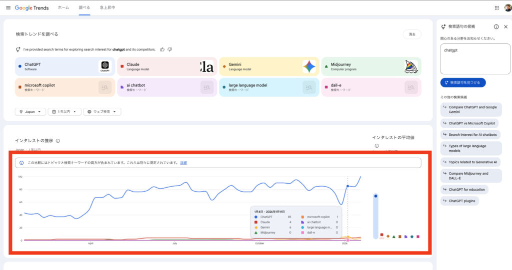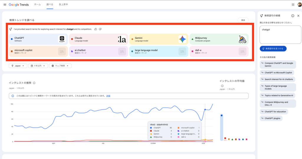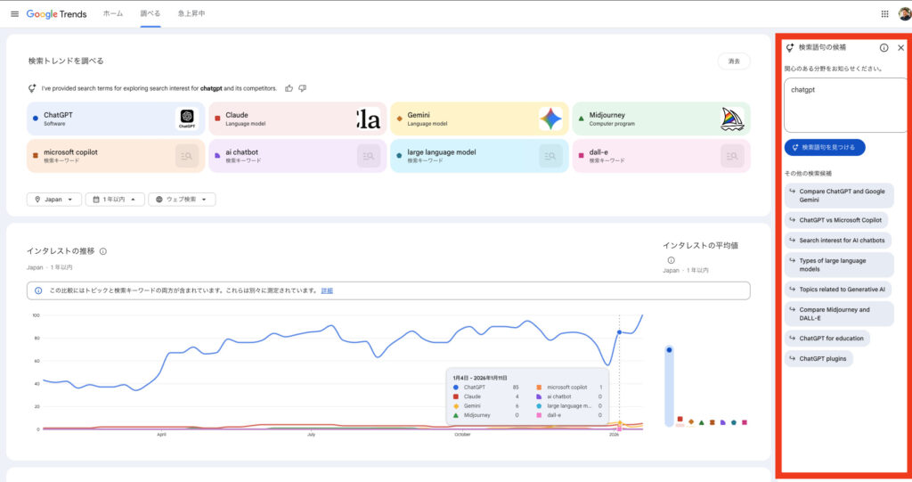 右側には急激に検索が増えている