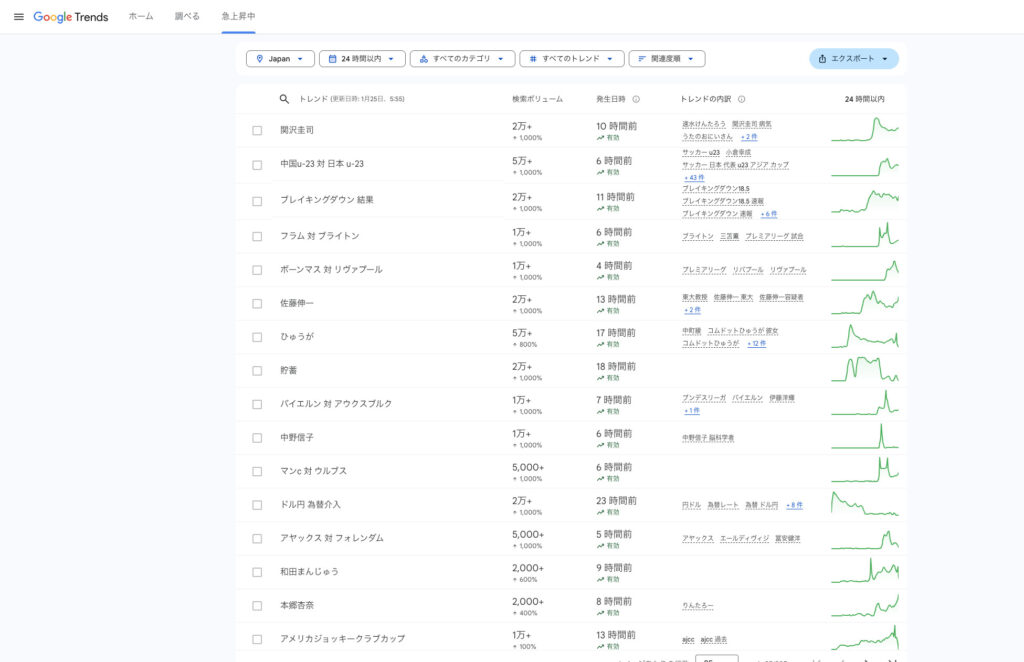 過去24時間以内に急上昇したキーワードが